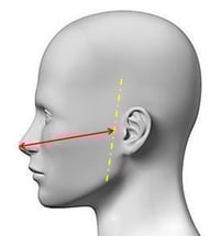 Miss von der Nasenspitze bis kurz vor den Ohransatz.